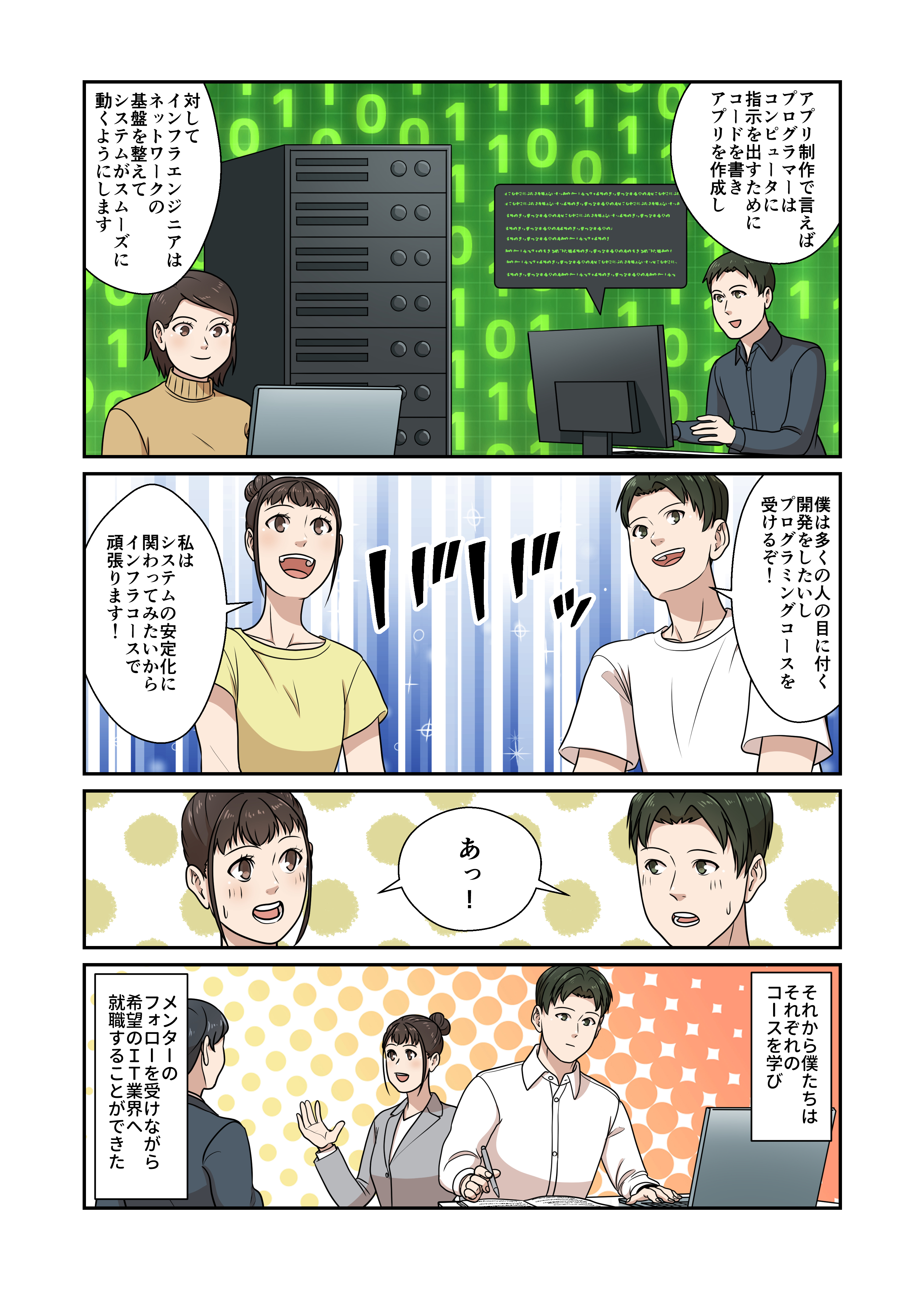 - A.どちらのコースもIT業界未経験の方を対象としています。